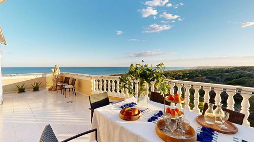 Hay viviendas que simplemente se visitan… y otras que te hacen imaginar tu vida en ellas desde el primer segundo.~Este ático dúplex en Campomar, frente a la pinada protegida de la Playa del Moncayo, pertenece a esa categoría especial. Aquí las vistas no se intuyen: te envuelven. El mar aparece frente a ti, sin obstáculos, sin edificios futuros, sin ruido visual. Solo naturaleza, luz y horizonte.~~Con un precio de 575.000 €, esta propiedad ofrece algo difícil de encontrar en la Costa Blanca: amplitud real, privacidad, orientación sur-este, terrazas enormes y una sensación de serenidad que se siente nada más entrar.~~Superficie oficial: 175 m2 construidos / 141 m2 útiles~Medición Matterport: 166 m2 de vivienda + 144 m2 de terrazas~Gastos de comunidad: 1006 € / trimestre~IBI: 706 € / año~~? Un hogar diseñado para disfrutar cada momento~Planta principal~~La entrada te recibe con un recibidor de 7 m2 con armarios empotrados. Desde ahí se accede a dos dormitorios, uno de ellos con baño en suite. Ambos cuentan con balconeras que se abren al Mediterráneo, ofreciendo una luz y un paisaje que acompañan desde primera hora del día.~~El baño principal completa esta zona.~~La vida se concentra en un espacio abierto de 63 m2 que une salón, comedor y cocina. Tres grandes ventanales orientados al sur llenan el interior de claridad y conectan con una terraza de 46 m2 equipada con barbacoa y toldos eléctricos.~Es un rincón perfecto para desayunar al sol, trabajar con vistas o disfrutar de cenas interminables con la brisa del mar de fondo.~~Planta superior~~Subiendo a la planta alta aparece un espacio íntimo y muy especial: el dormitorio principal de 15 m2 con baño en suite. Desde aquí se accede a un solárium privado de 114 m2 que rodea toda la planta.~Un lugar donde el silencio domina, donde la vista alcanza La Mata, el mar abierto y, en días claros, incluso Benidorm.~Incluye un trastero/lavandería de 5 m2 y una zona preparada para jacuzzi.~~Este solárium es el corazón emocional del ático: un espacio para desconectar, recibir invitados, tomar el sol o simplemente observar cómo cambia la luz del Mediterráneo a lo largo del día.~~✨ Detalles que marcan la diferencia~~Aire acondicionado central + 2 splits adicionales~~Piscina comunitaria tipo playa~~Varios ascensores~~Zonas comunes cuidadas~~Orientación sur-este~~Privacidad total y vistas garantizadas (pinada protegida)~~Luz natural durante todo el día~~? Campomar – Un entorno único~~Campomar es una de las zonas más exclusivas de Guardamar del Segura. Frente a la pinada del Moncayo, un espacio natural protegido, este ático ofrece tranquilidad, amplitud y un paisaje que difícilmente se repetirá.~Vivir aquí es disfrutar de aire puro, playa, dunas, rutas naturales y un clima mediterráneo privilegiado, todo a muy poca distancia de servicios y comodidades.~~? Ideal para…~~Personas nacionales o internacionales que buscan privacidad, vistas reales al mar, espacios amplios y una vivienda donde el tiempo se vive de otra manera.~Un lugar perfecto para quienes desean desconectar, teletrabajar con inspiración, jubilarse junto al mar o disfrutar de una segunda residencia de alto nivel.~~? Una vivienda que merece ser vivida~~Si buscas un ático que combine amplitud, terrazas gigantes, vistas protegidas y una ubicación excepcional, este dúplex en Campomar te está esperando.~Contacta para organizar una visita y sentir en primera persona todo lo que ofrece.~~? Aviso legal:~El presente anuncio no es vinculante y puede contener errores. Se muestra a título informativo y no contractual. Los datos expuestos son ofrecidos por terceros y se suponen correctos. La oferta puede estar sujeta a cambios de precio, retirada del mercado o modificación sin previo aviso. En el precio de venta no están incluidos impuestos legales ni gastos de escrituración.
