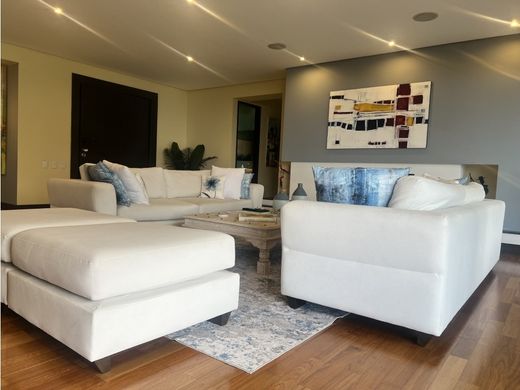 Este exclusivo apartamento tiene un área total de 334.45 m². cuenta con cocina abierta, tres amplios dormitorios, tres baños completos, sala comedor, un estudio y dos balcones, uno con hermosa vista a la ciudad de Medellín.El edificio ofrece excelentes amenidades como piscina, gimnasio, zona de BBQ, trampolín y un ascensor directo que llega únicamente a este apartamento, garantizando privacidad y exclusividad, ya que es un apartamento por piso.La ubicación es privilegiada, cerca de El Tesoro, el centro comercial Amsterdam y Del Este, facilitando el acceso a las mejores zonas de la ciudad.