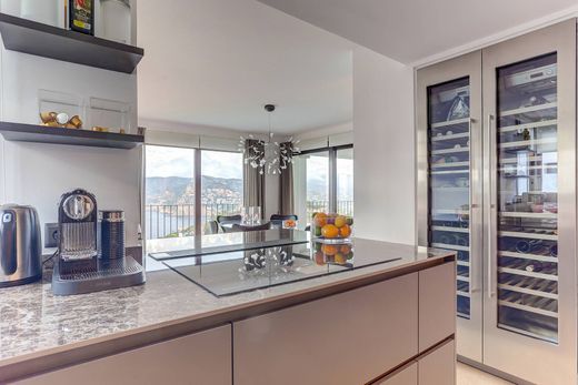 Con una superficie habitable de 141 m² y una superficie total de 304 m², la propiedad consta de tres habitaciones, incluyendo dos dormitorios bellamente decorados que dan al mar o a la bahía. Ambos baños están terminados en lujoso mármol Marron Imperial, uno de ellos en suite, y un aseo de invitados separado añade comodidad adicional. La cocina recién instalada de Birgit Müller está equipada con electrodomésticos de alta gama Gaggenau y Liebherr, y fluye perfectamente hacia una zona de estar y comedor de planta abierta. Las ventanas de piso a techo llenan el espacio de luz natural y dirigen la mirada directamente hacia el brillante Mediterráneo.