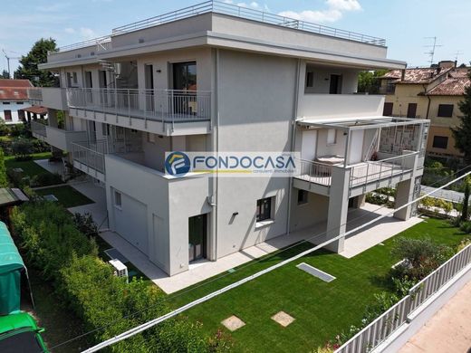 Apartamento en planta baja de estilo presidencial en un edificio de nueva construcción, situado a pocos metros del lago de Desenzano del Garda. Construido con métodos de construcción ultramodernos, prestando especial atención a los detalles de habitabilidad y eficiencia energética, presenta una excelente distribución de espacios interiores y acabados de alta calidad a elección del comprador. El apartamento consta de: entrada independiente, amplio jardín esquinero, porche delantero, amplio y luminoso salón con opción de dividir la cocina, pasillo de noche, un primer dormitorio doble con baño en suite, un segundo dormitorio y un baño principal. Un garaje doble completa la propiedad. Los detalles de construcción están disponibles bajo petición. Este edificio cuenta con un consumo energético muy bajo.