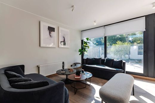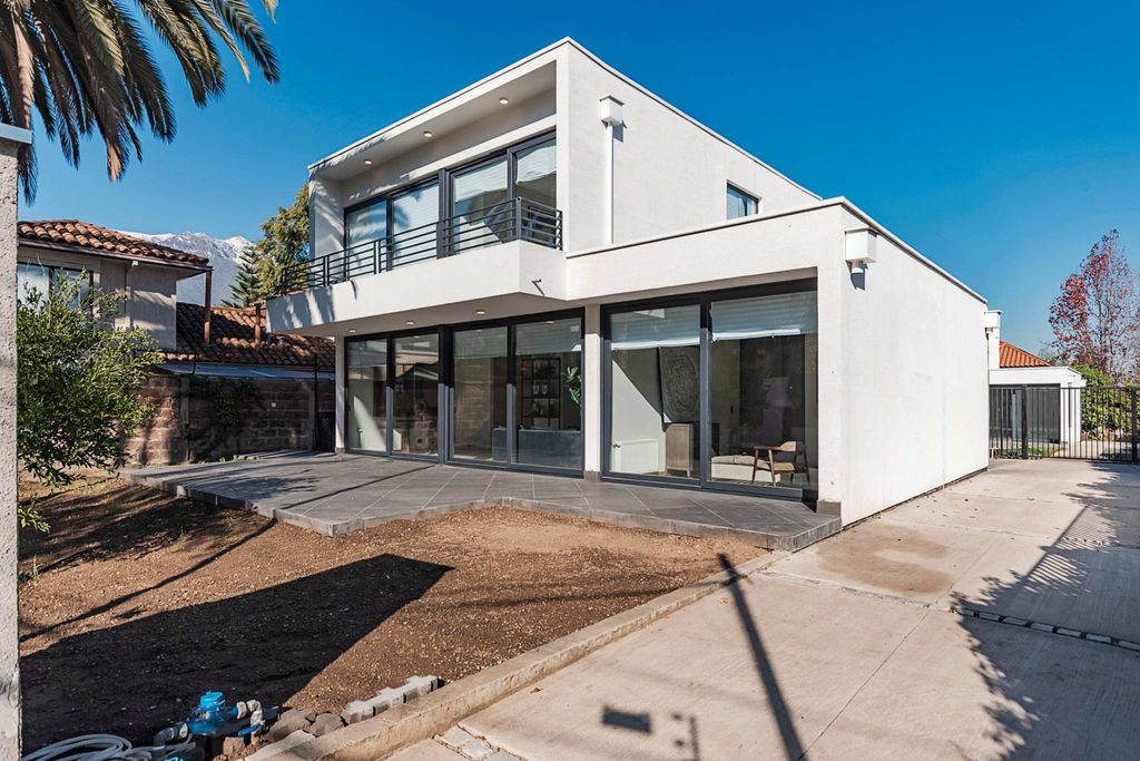 Casa mediterránea, recién terminada, se encuentra dentro de un condominio junto a otra casa igual, pero cada una con su propio terreno y entrada independiente. Destaca por su moderna arquitectura, altura de cielo, doble altura en la entrada, finas terminaciones y diseño de vanguardia. Primer piso: Hall de entrada con doble altura, living comedor juntos con salida a terraza y jardín. Baño de visita. Preciosa cocina con comedor de diario, equipada, cubiertas de cuarzo. Baño de servicio, patio trasero. Dormitorio principal con baño en suite y walk in closet. Segundo piso: Amplia sala de estar y dos dormitorios con salida a terraza. Un baño completo. Posibilidad de hacer un tercer dormitorio sobre losa. Calefacción central por radiadores. Ventanas termopanel. Alarma Cerco eléctrico. Estacionamiento para dos a 3 autos. Preciosa vista desde el segundo piso. Riego automático. Jardín formado.