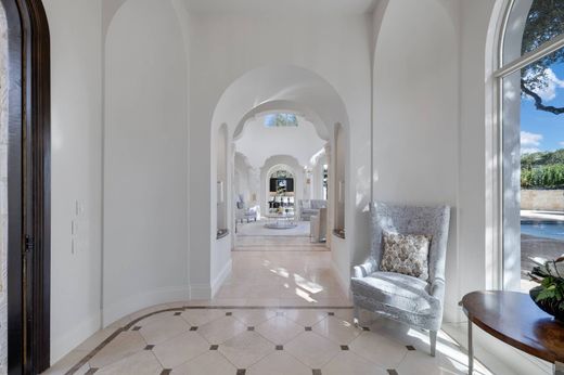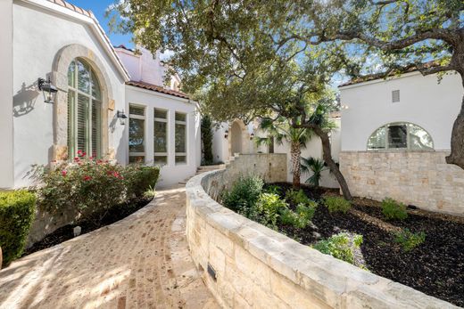 Ubicada en el enclave más exclusivo de The Dominion, una de las fincas privadas más importantes de 14 Duxbury Park, se encuentra en una prominente esquina entre Duxbury y Highgate, abarcando casi dos acres de cuidados jardines. Con raíces en la arquitectura mediterránea, pero con una estética refinada y de transición, la propiedad se despliega como un complejo residencial compuesto por una residencia principal, una casa de huéspedes y un pabellón deportivo y de bienestar construido específicamente para este fin. La escala, la composición y la privacidad de la propiedad la sitúan entre las fincas privadas más distinguidas de San Antonio. La residencia principal se encuentra anclada por una impresionante sala de estar formal octogonal de dos plantas y se despliega en una secuencia cuidadosamente seleccionada de espacios formales e informales, diseñados para una vida diaria refinada y un entretenimiento formal a gran escala. Una cocina de chef con electrodomésticos de acero inoxidable de calidad profesional se complementa con una cocina de catering, lo que permite una recepción fluida sin interrumpir las áreas de estar principales. Otras características destacadas incluyen una auténtica sala de cine con asientos tipo estadio, un estudio privado con muebles empotrados a medida y detalles en el techo de madera, y amplias zonas de entretenimiento, realzadas por el sistema de sonido integrado y la domótica que conecta todas las estructuras de la propiedad. La suite principal, con una ubicación privada, funciona como un auténtico refugio, con una sala de estar con chimenea de piedra Cantera y acceso directo al exterior. El baño, inspirado en un spa, luce amplios acabados en travertino y mármol, tocador doble y una presentación a nivel de sala de exposición, complementada con enormes vestidores para él y para ella. Las habitaciones de invitados dentro de la residencia principal son de generosas proporciones, ofreciendo privacidad y comodidad en todo momento. Una casa de invitados independiente ofrece total independencia y carácter arquitectónico, con techos abovedados con paneles de madera, chimenea de piedra Cantera, sala de estar privada, espacio tipo loft y acceso inmediato a zonas de barbacoa y entretenimiento al aire libre. Completa el complejo un pabellón deportivo y de bienestar construido específicamente con acero de calidad comercial integrado en tres niveles. Estas instalaciones incluyen una cancha de baloncesto cubierta de tamaño completo, una cancha de ráquetbol reglamentaria, una zona completa de musculación, piscina de resistencia, sauna, varios baños, una cocina de chef con servicio completo, una sala de juegos y observación con chimenea de doble cara y espacios de entretenimiento en la azotea. La vida al aire libre es igualmente refinada, con una amplia terraza de losa y ladrillo con diseño de espiga, muros de piedra de mampostería, una piscina y spa estilo resort con cascada y jacuzzi elevado, y varios patios cubiertos diseñados para reuniones y ocio. La propiedad cuenta con un garaje con entrada lateral, una amplia pista de estacionamiento y estacionamiento adicional junto al pabellón deportivo, lo que facilita la circulación de residentes e invitados, a la vez que permite la recepción a gran escala con facilidad y discreción. Un paisajismo maduro y fuentes enmarcan los terrenos, creando un entorno privado y sereno, acorde con su estatura.