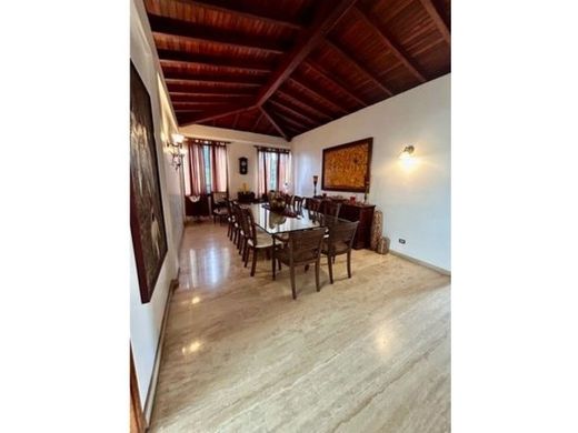 Se ofrece a la venta o alquiler esta exclusiva propiedad ubicada en la zona de El Hatillo, una de las más prestigiosas y buscadas en la ciudad de Caracas, específicamente en el Distrito Capital. Con una extensión de terreno de 2008 M2 y una amplia área construida de 450 M2, este inmueble se posiciona como una excelente opción para aquellos que buscan una residencia de lujo en una ubicación privilegiada. La casa cuenta con 5 cómodas alcobas y 6 baños, distribuidos de manera óptima para brindar comodidad y privacidad a sus habitantes. Además, cuenta con un amplio espacio para estacionar hasta 8 vehículos, ideal para familias con múltiples vehículos o aquellos que buscan recibir constantemente visitas. Entre las características internas, destacan que es un solo nivel, aire acondicionado, lo que garantiza una temperatura agradable en cualquier época del año; el amoblado de alta calidad, que aporta un estilo elegante a cada una de las habitaciones; y los baños auxiliares y en la habitación principal, con acabados de primera que brindan comodidad y confort. La cocina está totalmente equipada con electrodomésticos, ideal para aquellos amantes de la gastronomía. Además, cuenta con comedor auxiliar, depósito y habitación de servicio para el personal doméstico. El piso de cerámica / mármol le aporta un toque de elegancia y puede ser apreciado en toda la propiedad. Esta residencia también es ideal para aquellos que tienen mascotas, ya que cuenta con amplias zonas verdes y admite la presencia de animales de compañía. En cuanto a las características externas, la propiedad tiene acceso pavimentado y se encuentra ubicada en una zona residencial de alto nivel. Además, cuenta con área social, barbacoa / parrilla / quincho y jardín, perfectos para reuniones sociales y disfrutar de momentos al aire libre. La cercanía con centros comerciales y la facilidad de acceso al transporte público son aspectos que no pueden pasarse por alto. La cochera / garaje y el parqueadero para visitantes son ideales para aquellos que tienen varios vehículos o reciben constantemente visitas. La propiedad también cuenta con una puerta de seguridad y eléctrica, que brinda tranquilidad y seguridad a sus habitantes. No pierdas la oportunidad de adquirir esta propiedad única, que ofrece una combinación perfecta de ubicación, comodidades y lujo en la emblemática ciudad de Caracas. Contáctanos para conocer más detalles y concertar una visita.