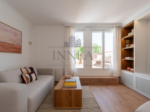 Atico de diseno en pleno barrio de Trafalgar, una de las zonas mas cotizadas y con mayor personalidad de Chamberi. Situado en una quinta planta de una finca clasica con ascensor, este atico ha sido reformado integramente con altisimas calidades, cuidando cada detalle para ofrecer el maximo confort.