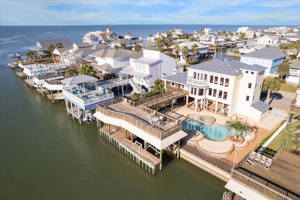 Próximamente: Impresionante casa en un lote doble, ubicada junto a la bahía y el canal. Esta casa frente al mar, cuidadosamente diseñada, cuenta con un ascensor excepcional, impresionantes vistas del atardecer, amplios espacios al aire libre y una distribución altamente funcional diseñada para una vida costera sin complicaciones. Pisos de madera, baldosas y alfombra. La espaciosa sala familiar se abre a la cocina, equipada con un refrigerador Sub-Zero, electrodomésticos modernos, excelente espacio de almacenamiento y una despensa amplia. Tres dormitorios y dos baños se encuentran en la planta principal, incluyendo una habitación con literas. La suite principal, en el tercer piso, incluye un balcón privado, dos amplios vestidores y un baño bellamente renovado con bañera profunda. Dos habitaciones adicionales pueden servir como dormitorios adicionales, lo que permite que la casa albergue cómodamente de 12 a 14 personas. Los aspectos exteriores destacados incluyen una piscina estilo resort, jacuzzi, tres trasteros y una amplia terraza con vistas espectaculares. Las comodidades para embarcaciones incluyen un muelle (de 3 a 4 años de antigüedad), telesquí con control remoto, estacionamiento para remolques y un muelle comunitario al otro lado del canal.