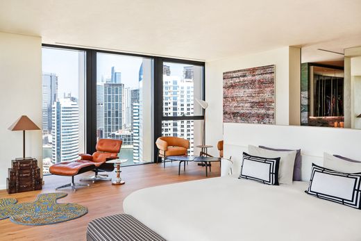 Ubicada en la vibrante Business Bay, esta residencia de cuatro habitaciones en Residence 110 ofrece una increíble experiencia de vida contemporánea a solo unos minutos del centro de Dubái. Combinando amplias proporciones con un estilo interior ecléctico, el apartamento representa una oportunidad única para familias que buscan una vivienda principal en el corazón de la ciudad. Elegantes pisos de madera se encuentran en toda la propiedad, junto con detalles de madera en espacios clave como la excepcional cocina de exhibición. La sala de estar y el comedor principales se extienden a lo largo de un lado del apartamento, contiguos a la cocina que también cuenta con electrodomésticos integrados, una isla de desayuno y encimeras únicas en tono jade. Otras áreas clave de la habitación incluyen un salón privado con vista a la ciudad y una sofisticada sala de cine privada. Cada una de las cuatro habitaciones está cuidadosamente distribuida con armarios empotrados y baños en suite, ofreciendo privacidad y comodidad. La suite principal disfruta de una mayor superficie, con una sala de estar privada, un amplio vestidor y un baño con acabados de mármol con una bañera exenta y vistas panorámicas. Residence 110 es un edificio con servicios completos que ofrece comodidades de primera clase, incluyendo piscina, gimnasio totalmente equipado, seguridad las 24 horas y estacionamiento privado. Su ubicación céntrica garantiza acceso inmediato a las principales zonas comerciales, gastronómicas y de negocios de la ciudad, con el Canal de Dubái y el centro a solo minutos. Ya sea para una residencia principal o una inversión a largo plazo, este apartamento combina estilo de vida, ubicación y comodidad en una oferta excepcional. Contáctenos hoy para programar una visita privada.