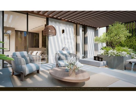 Escondida en una tranquila calle sin salida en el corazon de Nueva Andalucia, esta exclusiva residencia de nueva construccion ha sido desarrollada por la aclamada firma NMobe. Actualmente en construccion, con finalizacion prevista entre diciembre de 2025 y enero de 2026, esta joya arquitectonica combina minimalismo contemporaneo con calidez natural, creando un ambiente refinado y relajado. Los ventanales de suelo a techo, las lineas depuradas y los acabados personalizados permiten que la luz natural inunde los interiores, mientras que el exuberante paisaje tropical circundante garantiza privacidad y tranquilidad absoluta.