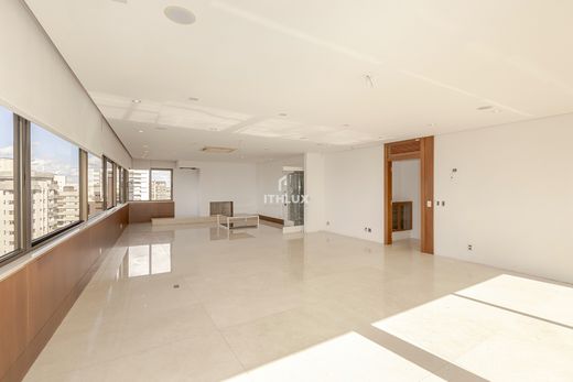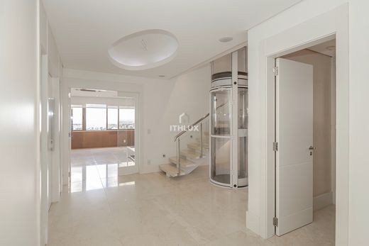 Impresionante ático tipo Triplex de la más alta calidad con una zona privada de 705 m² y que ofrece: 3 dormitorios grandes, dos de los cuales son suites, oficina, sauna y zona privada de fitness, jacuzzi, dependencia completa, asero, barbacoa, chimenea, piscina exclusiva, zona gourmet, ascensor privado con acceso a la propiedad y ascensor en la unidad para acceder a las 3 plantas, con 6 plazas de aparcamiento en una zona privada con acceso independiente y terrazas con vistas panorámicas 360° de Porto Alegre. Propiedades con un diseño inteligente y amplio, materiales nobles en todos los entornos, abundante iluminación natural, integración entre zonas sociales, confort acústico y térmico, están en la propiedad: separaciones, mobiliario planificado (cocina, baño, dormitorio), cocina, campana, lavadora y secadora.