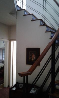 Gran escalera en parquet con buena baranda.