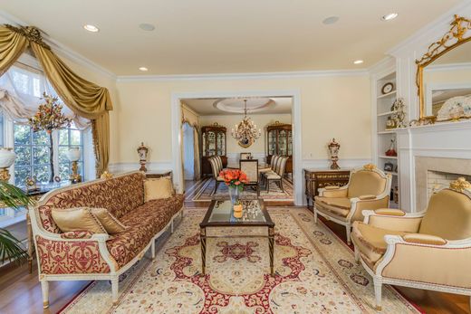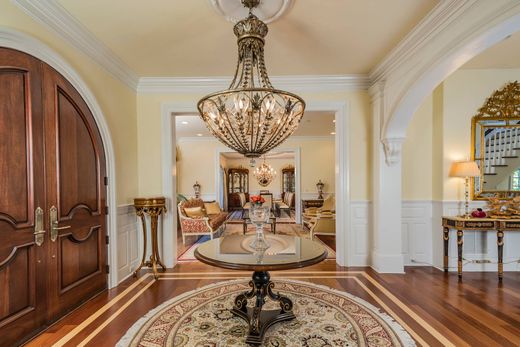 El enclave de Rushbrook es conocido por sus espaciosas casas de distinción y esta residencia de estilo inglés, revestida de piedra, es quizás la más pintoresca de todas. Encaramado en un amplio lote de apenas 3,5 acres, está envuelto en privacidad forestal en tres lados. Los renombrados Barsky Builders, expertos en crear espacios personalizados que hacen que el entretenimiento sea más fácil y la vida cotidiana sea un poco más indulgente, no se detuvieron en las características arquitectónicas. Un arco etiquetado en el vestíbulo y un techo ovalado empotrado en el comedor causan una impresión sorprendente, pero estos detalles no son solo para habitaciones formales. La sala familiar abierta de la cocina gourmet sorprende con una ventana redondeada de dos pisos y una pared con paneles a juego. Mientras que una terraza acristalada con puertas francesas y faroles reluce con luz, los paneles de madera y el artesonado de la biblioteca adyacente son completamente envolventes. Siete habitaciones tienen armarios personalizados, incluido el principal decadente con vestidor de doble cara. En el nivel inferior, un gimnasio con sauna, cine en casa y bodega irradian desde una sala de fiestas abierta.