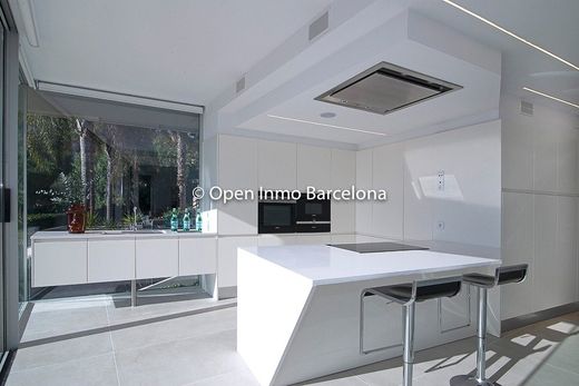 Villa a estrenar en Sitges Can Girona, construida en 2019, en un terreno de 1436m2, y distribuida en dos plantas más sótano, ~ En la planta sótano encontramos un garaje para cuatro coches , trastero, lavadero, sala de máquinas y bodega. ~ Cuenta con 395m2 útiles y 466m2 construidos, con ascensor. ~ Piscina con zona chill-out, vestidor y baño en la planta más alta con zonas ajardinadas. ~ De estilo moderno con el blanco dominando todos los espacios, diáfanos llenos de luz y vistas al mar. ~ Salón de 80m2 con cocina abierta y habitación como despacho con vistas a la piscina, que dan paso a la terraza. Cuatro dormitorios dobles, tres de ellos en suite. La calefacción y aire acondicionado es por aerotermia. ~ La casa tiene ventanas de cristal de cuatro láminas, suelos de porcelanato gris y madera, armarios empotrados, hilo musical, alarma. Domótica.~ La vivienda se halla en la zona del Club de Golf Terramar de Sitges, ~ Colegios internacionales : British School of Barcelona (BSB)a pocos minutos en coche, autobus escolar cerca. Olive Tree , Richmond y Bel Air a menos de 10 minutos conduciendo. ~ Villa de Lujo con vistas al mar en Sitges.