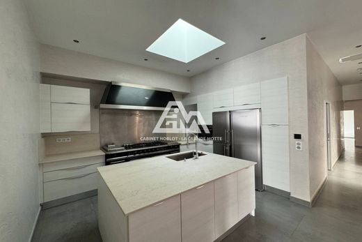 A Montpellier - Au centre-ville - Hôtel particulier dans un immeuble classé de 269 m ² loi carrez (335 m ² au total) sur 3 niveaux - Comprenant : - Au sous-sol : 3 pièces pouvant être aménagées en salle de sport, cave à vins - RDC : hall d'entrée - 1er étage : une magnifique salle à manger avec cuisine ouverte équipée, très grand salon et séjour, bureau, patio, chambre avec placard, grande chambre avec placard, suite parentale avec chambre, dressing, salle de bain + douche et wc, salle d'eau avec wc, wc - Excellent état - Belles prestations, beau volume et belle hauteur sous plafond - Double vitrage, volets électriques, alarme - Dans une rue calme et à proximité de la Comédie et proche de toutes commodités - 2 places de parking et un local de 27 m ² en face compris - ''Les informations sur les risques auxquels ce bien sont disponibles sur le site www.georisques.gouv.fr''