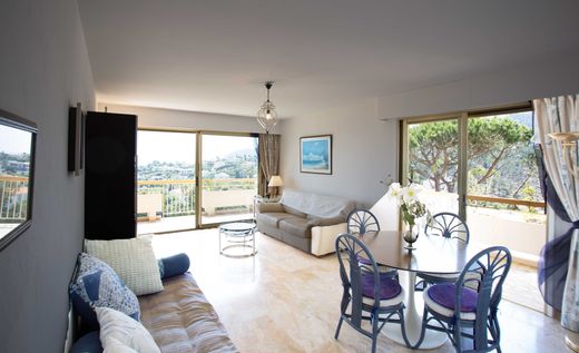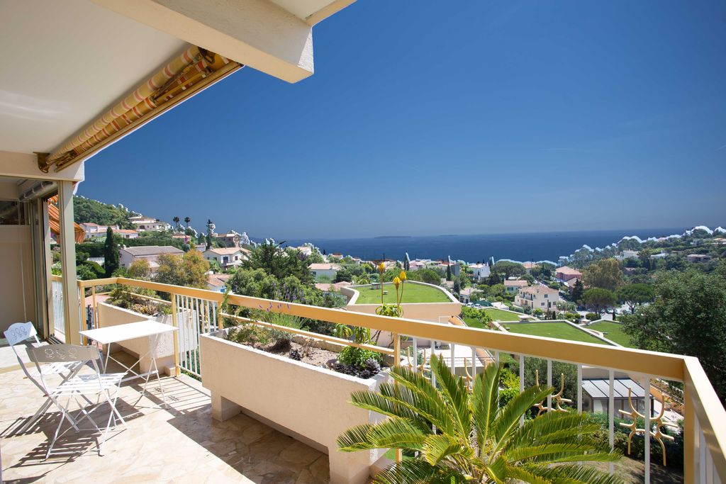 LOCATION DE VACANCES Sur les hauteurs de La Napoule, dans une belle résidence avec piscine, très beau 3 pièces de 55 m2 + loggia situé au 2ème étage composé d'une entrée, d'un grand séjour/salle à manger agréable avec canapé-lit, TV, d'une cuisine indépendante (four, plaques vitrocéramiques, micro-ondes, lave-vaisselle et lave-linge), d'une chambre avec un lit double, d'une seconde chambre loggia avec un lite double, d'une salle de bains, d'un WC indépendant. Les 2 grands balcons d'angle exposés Sud et Ouest de 15 m2 chacun offrent une magnifique vue panoramique sur la mer et les montagnes de l'Estérel.