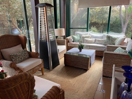 Villa de 3 étages qui totalisent une surface habitable totale de 435 m 2, avec un terrain inégal de 1400 m 2, ce qui permet d'avoir facilement de la lumière naturelle même au sous-sol. Dans la partie avant, il dispose d'une porte d'accès automatique et ~ un auvent a été installé avec une structure métallique pour garer ~ 2 véhicules. ~ Le rez-de-chaussée a une superficie de 190 m 2 répartis en porches avant et ~ arrière, tous deux fermés. avec structure en aluminium et climalit d'environ 20 m 2. chacun~, ce qui facilite sa jouissance totale tout au long de l'année. A l'intérieur, il est distribué dans un hall, salon-salle à manger avec cheminée française et accès au porche arrière, avec vue sur la piscine privée et la pinède, la cuisine est équipée d'appareils électroménagers et a accès au porche, ce qui en fait un salle à manger pour le beau temps. A ce même étage se trouvent 3 grandes chambres, toutes avec placards intégrés et 2 salles de bains. La chambre principale de type suite dispose d'une salle de bain intégrée (avec fenêtre) et d'armoires encastrées de grande capacité. A ce même étage, le garage a été adapté et transformé en une salle de loisirs auxiliaire en plusieurs pièces~ avec la même enceinte que les porches et une cheminée adaptée.~ ~ Le 1er étage a 110 m 2, avec une forme de grenier entièrement praticable puisque~ Il a une hauteur minimale de 150 cm divisée en deux pièces d'environ 30 m² chacune... dont une avec une enceinte vitrée, une salle de bain de 10 ~ mètres avec un magnifique dressing ; tous deux avec fenêtres. ~ ~ Sous-sol de 130 m 2, dispose d'une cave entièrement équipée de 30 m, avec ~ cave à vin et cuisine avec comptoir intégré, grill avec cheminée, plaque vitrocéramique et ~ lave-vaisselle. Il comprend également 1 chambre de 16 m 2 avec accès direct à la piscine, salle de sport, WC avec douche. De la cave vous avez accès à un ~ grand porche à cet étage. ~ La piscine est chauffée, permettant son utilisation tout au long de l'année. ~ Le chauffage est au diesel avec circuits indépendants.