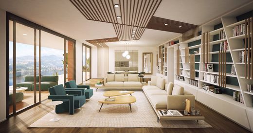 Nouveau penthouse de 4,5 pièces à vendre dans la résidence à Montagnola, Collina d'Oro. 20 appartements prestigieux de différentes tailles et chambres seront construits dans un quartier exclusif et très calme, avec une splendide vue sur le lac. Le condo est situé à côté de l'école américaine TASIS et à proximité du Franklin College. L'appartement est situé au dernier étage de l'immeuble et se compose de 4.5 pièces pour 214.2 m², plus une terrasse de 69.5 m². Le lotissement intérieur se compose de : séjour-cuisine, deux couloirs, toilettes, dégagement, buanderie, douche, trois chambres, salle de bains, penderie, terrasse et cave. Pièces : 4.5 Surface : 214.2 m2 + 69.5 m2 de terrasse Prix : CHF 3'348'000.-- + CHF 60'000.-- pour chaque place de parc dans le garage.