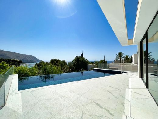 Cette fantastique maison de luxe est située en deuxième ligne de mer dans le quartier recherché de Mascarat à Altea. La maison a été construite avec les meilleurs matériaux, comme des portes de conception italienne et des carreaux de salle de bains en nacre. L'entrée de cette villa de luxe se trouve à l'étage supérieur où se trouvent trois chambres avec salles de bains en suite. À l'étage intermédiaire se trouve le grand salon/salle à manger avec une énorme cheminée, une cuisine ouverte équipée d'appareils Miele et des toilettes pour les invités. Du salon, vous accédez à la terrasse avec une piscine à débordement et une douche extérieure, ainsi qu'un grand espace pour un coin barbecue. Au demi-sous-sol, il y a une autre chambre, une salle de bains, un sauna, une buanderie et une pièce avec tous les appareils électroniques et le chauffage de la maison. La maison dispose d'un portail électrique pour accéder au parking pour deux voitures qui peut être couvert.