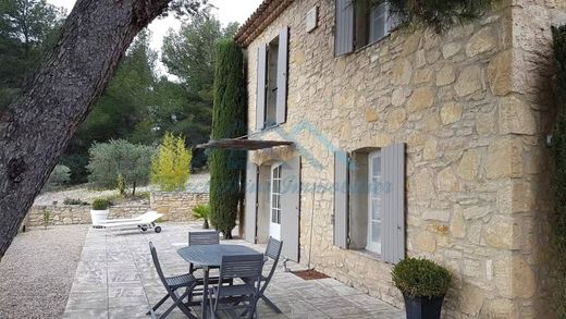 Au cœur d'une oliveraie de 15 000 M2 (240 oliviers classés AOP), un superbe Mas contemporain de 180 M2, en pierres de taille, réalisé par l'architecte de renom Hugues Bosc , très au calme et à l'abri des regards composé de :