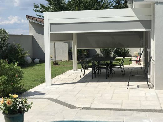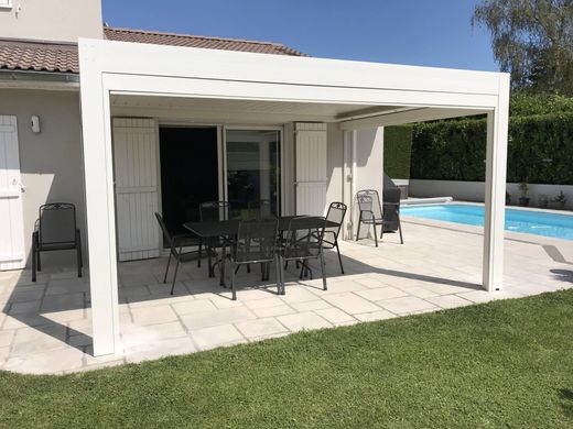 Vous apprécierez les différents équipements extérieurs, à savoir : l’entrée sécurisée par portail automatique et visiophone, la piscine au sel 4/9 avec bâche à barre, la plage carrelée, le jacuzzi, la pergola bioclimatique avec toiles latérales motorisées, l’arrosage et la tondeuse automatiques, les luminaires extérieurs.