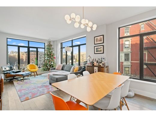 NOUVEAU PRIX! Le vendeur dit VENDRE ! L'OPPORTUNITÉ et LE NOUVEAU PRIX : Baigné de soleil, ce havre de paix de 2 BR/2 salles de bain, Appartement 4C, s'étend sur une superficie impressionnante de 1 169 pieds carrés. Profitez du salon et de la salle à manger lumineux dotés de fenêtres enveloppantes offrant de vastes vues nord et ouest. La résidence dispose d'une cuisine spacieuse avec un garde-manger et un bar pour le petit-déjeuner, tandis que la somptueuse suite parentale est dotée d'un dressing sur mesure. Incarnant la sophistication et le confort, 10 résidences Lenox présentent des plans d'étage gracieux, des hauteurs de plafond jusqu'à 9'-6 et des détails élégants comme un parquet en chêne blanc avec des motifs de planches et de chevrons. Les fenêtres à battants offrent des vues panoramiques sur le quartier. Les touches de luxe comprennent le chauffage et la climatisation multizones, le pré-câblage pour les téléviseurs et le câble, une laveuse/sécheuse Bosch et des systèmes de placards personnalisés dans toutes les suites principales. La cuisine allie harmonieusement fonctionnalité et beauté, avec des comptoirs en marbre Danby Fantastico, des armoires en laque blanche personnalisées, un dosseret chic en carrelage gris et des appareils électroménagers Bosch à panneaux personnalisés. Entrez dans l'élégante salle de bain principale ornée de murs en marbre brillant Bianco Sivec, de planchers chauffants radiants et d'un mur d'accent en mosaïque de marbre Lais Grey. Une vanité en noyer personnalisée et des luminaires en chrome poli de Waterworks ajoutent une touche d'opulence. La deuxième salle de bain respire un raffinement chic avec des murs en carreaux de métro blancs classiques, des sols en carreaux de porcelaine chauffants et une vanité en noyer personnalisée avec des détails en métal bronze. Une baignoire profonde de Duravit et des raccords Waterworks complètent l'ambiance sophistiquée. Conçu par la célèbre société de design Fogarty Finger, 10 Lenox comprend 29 résidences exquises. Un mélange harmonieux de détails modernes et classiques définit ce bâtiment de huit étages en brique et en pierre moulée, offrant une vue sur Central Park et reflétant le riche héritage de Harlem. Les installations comprennent un salon sur le toit avec barbecue, une salle de remise en forme, une salle de jeux pour enfants ensoleillée, des cabanes privées sur le toit à acheter et une vue sur le parc depuis l'espace d'agrément commun sur le toit. Les services comprennent un portier à temps partiel, un cyberportier, un surintendant de l'immeuble, un local à vélos et une unité de stockage incluse avec la résidence, offrant une commodité supplémentaire. De plus, la propriété peut être livrée vacante, offrant ainsi une flexibilité au locataire exigeant.
