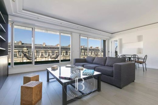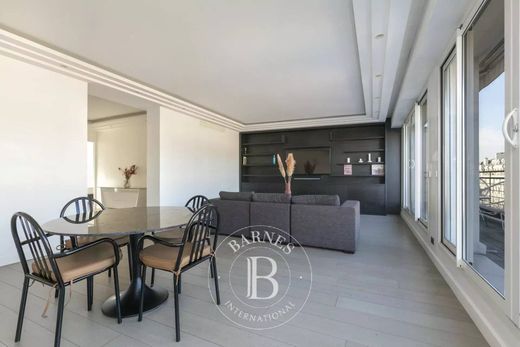 Situé au 6ème étage d'un très bel immeuble, cet appartement de 118m² bénéficie d'une terrasse de près de 20m² avec vue sur la prestigieuse Avenue Montaigne. Récemment rénové, le bien se compose d'une entrée, d'un double séjour donnant sur la terrasse de plain pied, d'une cuisine équipée indépendante, de WC invités, ainsi que de deux chambres en suite comprenant chacune un dressing, une salle d'eau et des toilettes.L'appartement est équipé d'une climatisation réversible.Un gardien est présent dans l'immeuble qui est parfaitement entretenu.