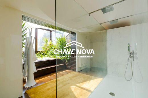 (Réf. : SMF/02711 - CN Santa Maria Feira) Maison de luxe de 4 chambres, à proximité du château de Santa Maria da Feira. Une maison de rêve ! Avec un magnifique jardin, une piscine, un potager et un verger, avec une intimité totale, combiné au confort et au raffinement de la maison, vous trouverez ici la maison parfaite pour toute la famille. La maison est composée de : Rez-de-chaussée : - Séjour avec cheminée à l'éthanol au milieu le séparant de l'autre séjour et salle de jeux, avec accès à la terrasse, à la piscine et à l'ensemble du jardin et de la zone de culture ; - Salle de cinéma; - Bureau; - WC; 1er étage : - Cuisine entièrement équipée avec électroménagers Bosch intégrés, réfrigérateur américain et îlot central ; - Salle à manger; - WC partagés ; - 2 chambres; - 1 suite; - Balcon aux dimensions généreuses; 2ème étage : - Suite parentale avec salon, chambre, grande terrasse en deck, salle de bain, jacuzzi et placard. Extérieur : - Pont ; - Piscine; - WC complet supportant la piscine ; - Cuisine avec barbecue; - Espace gym, bain turc et sauna ; - Jardin; - Potager, verger ; - Garage pour 2 voitures; - Lessive; - Petit lac avec cascade. Caractéristiques : - Domotique ; - Chauffage au sol; - Panneaux thermodynamiques ; - Pompe à chaleur; - Double parois avec hotte; - Double vitrage et châssis en bois ; - Panneaux photovoltaïques ; - Possibilité de vente avec le terrain attenant de près de 1700m2, où se trouve toute une zone de culture, avec arbres fruitiers et légumes. Qualité de vie et raffinement dans votre nouvelle maison. Nous prenons en charge l'ensemble du processus de financement et de suivi jusqu'à la signature de l'acte authentique. Pour toute information dont vous pourriez avoir besoin, nous sommes à votre entière disposition. Planifiez votre visite maintenant, Chave Nova de Santa Maria da Feira