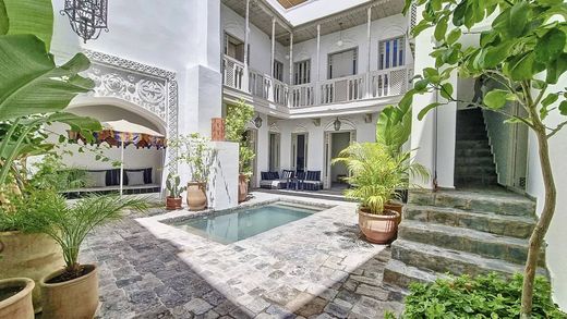 Splendide et rare Riad de 4 superbes chambres à la vente situé au cœur de Mouassine, un des quartiers les plus prisés de la Médina de Marrakech, à proximité de la célèbre Place Jemaa El Fna.