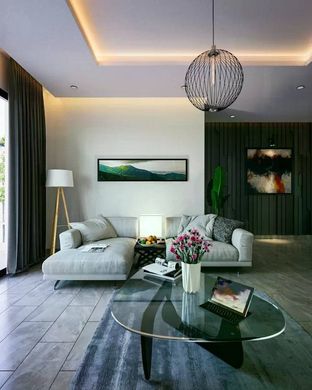 Triple séjour très lumineux donnant sur la terrasse, le séjour est vaste et offre une lumière naturelle abondante grâce aux grandes portes-fenêtres qui donnent sur la terrasse panoramique. Cet espace est idéal pour recevoir des invités ou profiter de moments de détente avec une vue panoramique sur les environs.