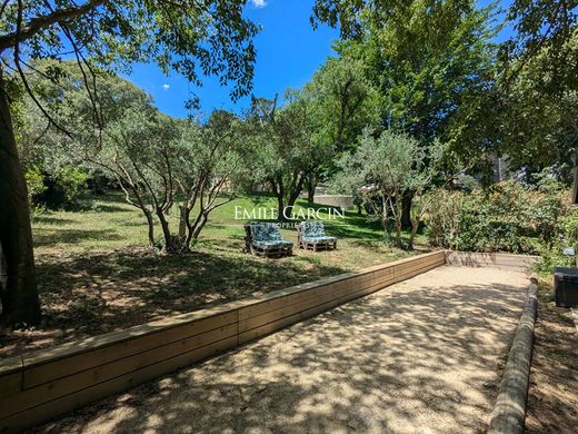 A seulement quelques minutes du centre-ville de Nîmes, et non loin de la Tour Magne, découvrez cette magnifique propriété nichée au coeur d'un terrain arboré et paysager. Entièrement restaurée avec soin et des matériaux de qualité, la maison principale allie harmonieusement authenticité et modernité pour offrir un cadre de vie unique et chaleureux. Elle se compose de grands volumes lumineux, de 6 chambres spacieuses et 5 salles de bains, dont trois en rez-de-chaussée, parfaites pour une vie de plain-pied. Un Mazet indépendant complète l'ensemble : idéal pour recevoir famille et amis, il dispose d'une chambre et d'une salle d'eau privative. A l'extérieur, vous profiterez de superbes espaces paysagers agrémentés d'oliviers, d'un boulodrome, et d'une piscine à débordement offrant une vue imprenable sur un vallon verdoyant. Confort garanti avec pompe à chaleur, climatisation réversible, deux garages, espaces de rangement, forage et panneaux photovoltaïques.