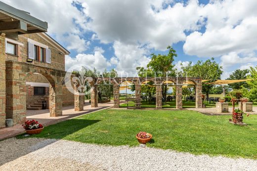 L'ensemble immobilier d'environ 1000 m² est composé de plusieurs bâtiments. On peut apprécier la grande ferme utilisée pour les activités d'agritourisme avec 6 chambres chacune avec sa propre salle de bain. Un second corps de ferme abrite trois pièces pour un total d'environ 150 m² plus un portique de 80 m². À quelques pas de là, le restaurant, entièrement équipé et organisé, peut accueillir jusqu'à 200 personnes et se prête parfaitement à l'organisation d'événements. Il se compose d'une salle d'environ 200 mètres carrés et d'un portique d'environ 230 mètres carrés.
