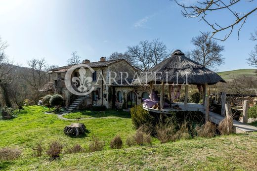 Ferme en pierre sur deux niveaux en bon état à Castelmuzio, Val d'Orcia, cette propriété particulière jouit d'une intimité absolue et d'un contact direct avec la nature environnante, entre le bruit des feuilles et le fleuve qui coule au loin, le tout dans un jardin privé d'environ 1 hectare.