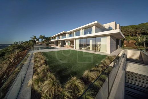 Magnifique villa moderne et luxueuse située dans le prestigieux domaine de La Reserva de Sotogrande, offrant une vue panoramique imprenable sur la mer Méditerranée et le golf, au cœur d'un paysage de pinèdes et de jardins paysagers. D'une superficie de 761 m², la propriété comprend un vaste séjour ouvert avec cuisine moderne et coin repas, une élégante salle à manger, un second salon donnant sur le jardin arrière et la forêt, un bureau, cinq chambres et cinq salles de bains, dont une suite parentale majestueuse avec dressing, salle de bains privative et une vue imprenable sur le paysage. On y trouve également une cave à vin moderne, une buanderie, un cellier, une salle de cinéma, une salle de sport entièrement équipée, un spa avec sauna et hammam, un garage pour trois voitures et un logement pour le personnel. Toutes les pièces de vie principales et les chambres bénéficient d'une vue dégagée. La villa est également équipée de la climatisation, d'une cheminée, d'une buanderie, de deux locaux techniques et d'un parking extérieur. À l'extérieur, le jardin avec terrasse et une impressionnante piscine à débordement s'intègrent harmonieusement au panorama environnant. La Reserva de Sotogrande est l'un des quartiers résidentiels les plus exclusifs de la Costa del Sol, réputé pour sa tranquillité, son intimité et son luxe. Ce prestigieux domaine offre des prestations haut de gamme, notamment son célèbre golf et son club de plage privé. De plus, sa situation stratégique permet un accès facile aux écoles internationales renommées, aux ports de plaisance, aux restaurants gastronomiques et aux boutiques de luxe. Le quartier est également entouré d'un cadre naturel exceptionnel, idéal pour ceux qui recherchent un style de vie raffiné au cœur de la nature.