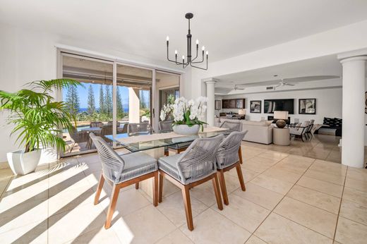 Bienvenue à Pineapple Hill, où l'élégance rencontre la beauté naturelle du Kapalua Resort de Maui, mondialement connu. Nichée dans l'un des quartiers les plus prisés de Maui, cette élégante maison offre une vue panoramique imprenable sur l'océan, l'île et les couchers de soleil, alliant harmonieusement vie intérieure et extérieure. Le vaste salon s'ouvre sur de vastes vérandas couvertes, créant un cadre idéal pour recevoir ou se détendre. Profitez de la piscine et du spa, où l'observation des baleines et les célèbres couchers de soleil de Maui feront partie de votre quotidien. À l'étage, vous trouverez trois suites luxueuses, dont une suite parentale avec véranda privée, un élégant coin salon, un spacieux dressing et une salle de bains d'inspiration spa avec baignoire et douche spacieuse. Des améliorations modernes garantissent efficacité et durabilité, notamment 62 panneaux solaires, quatre batteries Tesla, une climatisation neuve, une moquette moelleuse et des stores design. Situé dans la résidence sécurisée de Pineapple Hill, le complexe hôtelier offre aux résidents un accès à des équipements dignes d'un complexe hôtelier, dont un club-house, une piscine, des courts de tennis et de pickleball, ainsi qu'une gestion dédiée sur place. Kapalua offre également certaines des plus belles plages de Maui, des restaurants primés et les célèbres parcours de golf Kapalua Plantation & Bay. L'hébergement est meublé et comprend des œuvres d'art originales.