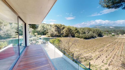 La Villa offre une vue dégagée sur la végétation et les vignobles aux alentours. Au loin en face, la montagne