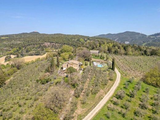 La ferme est entourée d'environ 60 hectares de terrain où se trouvent environ 1500 oliviers en pleine production d'huile biologique, 40 hectares de terres arables, une partie de bois et un jardin bien entretenu plein de plantes ornementales. La propriété est complétée par deux belles piscines (12 x 6 m et 4 x 3 m) aux formes douces et design d'où il est possible de profiter d'un panorama suggestif et de se régénérer pendant les mois chauds de l'année. L'installation photovoltaïque et les panneaux solaires rendent cette propriété encore plus attractive, grâce aux coûts de gestion réduits.