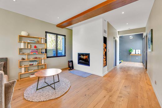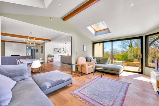 DIVONNE SOTHEBY'S INTERNATIONAL REALTY vous propose une propriété exceptionnelle à Thoiry, d'une superficie de 236 m², agrémentée d'une terrasse offrant une vue imprenable sur la campagne environnante et le Mont Blanc. Idéalement située à seulement 12 km de l'aéroport de Genève et à 7 km du CERN, cette maison a bénéficié d'une rénovation complète il y a 9 ans et se trouve sur une parcelle constructible et détachable. S'étendant sur trois niveaux, la maison se compose au premier niveau d'une entrée avec un dressing sur mesure, d'une bibliothèque, d'une salle d'eau, d'un WC, ainsi que d'une cave et d'une chaufferie. Au deuxième niveau, vous découvrirez une cuisine américaine entièrement équipée, ouverte sur un spacieux salon-séjour agrémenté d'une cheminée et d'une véranda confortable. La suite parentale dispose d'un dressing et d'une salle d'eau privative, accompagnée d'un WC. Le troisième niveau comprend trois chambres, une salle d'eau, un WC et un bureau spacieux. Cette propriété se distingue par ses équipements modernes, tels qu'un portail électrique, un chargeur pour voitures électriques, plusieurs places de stationnement extérieures, un système d'alarme, des stores électriques, un jacuzzi, ainsi qu’un emplacement privilégié. La possibilité de construction supplémentaire fait de cette maison un bien unique dans le village. DIVONNE SOTHEBY'S INTERNATIONAL REALTY, votre expert dans la vente de propriétés de luxe dans le Pays de Gex et le Genevois (Grand Genève). Géorisques Les informations sur les risques auxquels ce bien est exposé sont disponibles sur le site Géorisques