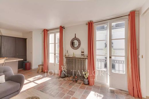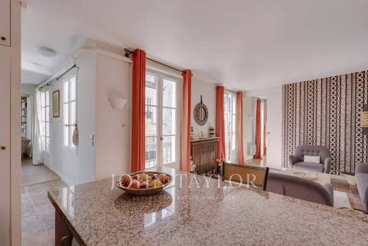 Rue Jacob. Dans l'une des rues les plus prisées de Saint-Germain-des-Prés, au dernier étage d'un bel immeuble avec gardien édifié en 1878, accessible par ascenseur jusqu'au troisième étage, nous vous proposons un appartement charmant et en excellent état de 50,56 m² loi Carrez au cinquième et dernier étage.