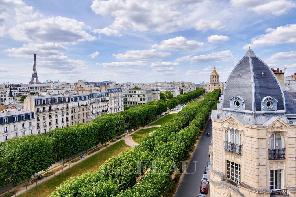 *Au septième étage : une entrée avec vestiaires, un grand séjour donnant accès à un balcon offrant une vue dégagée sur la Tour Eiffel et le Dôme des Invalides, une cuisine aménagée et semi-équipée (plaques et hotte), une suite parentale avec dressing et salle de douche, deux chambres avec placards dont une offrant une vue Tour Eiffel et la seconde sur cour, un bureau (ou quatrième chambre), une salle de bains/douche, une buanderie puis deux toilettes invités.