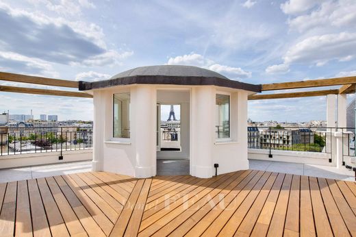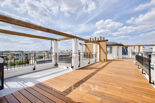 Rare à la location, aux deux derniers étages d'un immeuble de standing, gardienné et sécurisé, appartement duplex de 142 m² avec terrasse en rooftop de 102 m² offrant une sublime vue panoramique sur la Tour Eiffel, le Dôme des Invalides et les monuments parisiens, ayant bénéficié d'une rénovation complète.