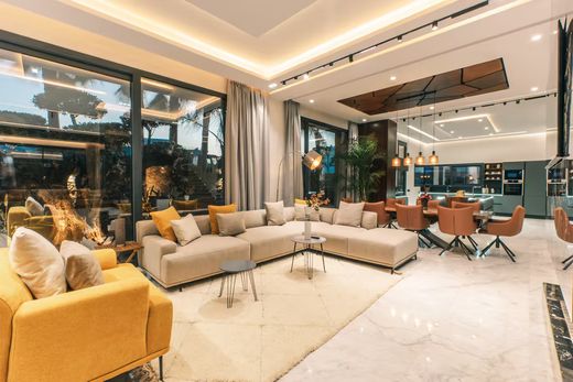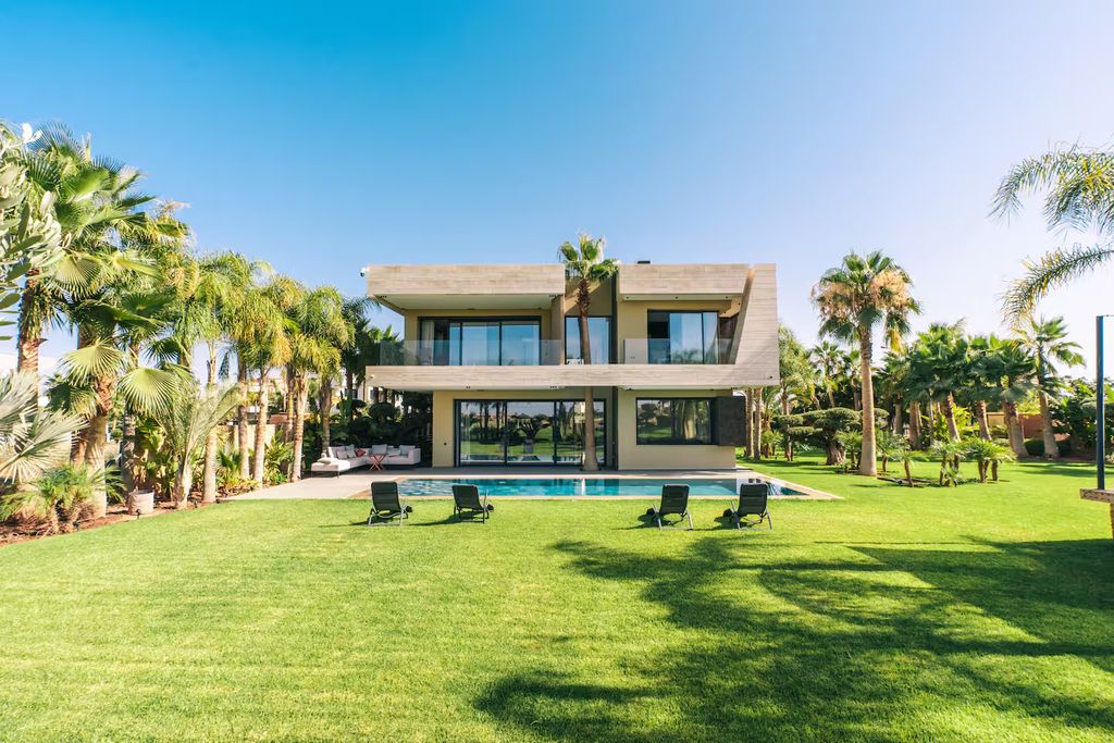 Luxueuse villa au Golf Resort Argan, Marrakech. Cette somptueuse villa est située sur un terrain magnifiquement paysagé et très convoité de 2 500 m² au sein du prestigieux Golf Resort Argan à Marrakech. Offrant 650 m² habitables, la propriété offre une combinaison exceptionnelle de luxe et de confort sur trois niveaux. Avec 6 chambres spacieuses et 10 salles de bains élégantes, la résidence est entièrement décorée avec des matériaux haut de gamme, notamment du marbre et de la pierre naturelle qui soulignent son caractère raffiné. La cuisine et de nombreuses installations sur mesure proviennent d'Allemagne, garantissant une qualité exceptionnelle. Le design moderne allie des lignes épurées et contemporaines à des touches chaleureuses et accueillantes, centrées autour d'une magnifique cheminée qui crée une atmosphère à la fois chaleureuse et sophistiquée. Pour la détente et le bien-être, la villa dispose d'une piscine privée et d'un jardin magnifiquement entretenu avec plusieurs coins tranquilles pour se détendre. Un espace bien-être dédié avec un hammam traditionnel offre un havre de paix. La propriété répond également aux normes les plus élevées en matière de technologie domestique moderne et comprend une salle de fitness entièrement équipée. Cette villa est idéale pour ceux qui recherchent l'exclusivité et un style de vie raffiné dans l'un des quartiers les plus prisés de Marrakech. Incarnant l'élégance et le confort dans les moindres détails, elle offre également une excellente opportunité d'investissement, avec un potentiel de revenu locatif d'environ 20 000 à 30 000 € par mois selon l'occupation. Une propriété à couper le souffle, comme neuve ! N'hésitez pas à nous contacter pour plus d'informations.