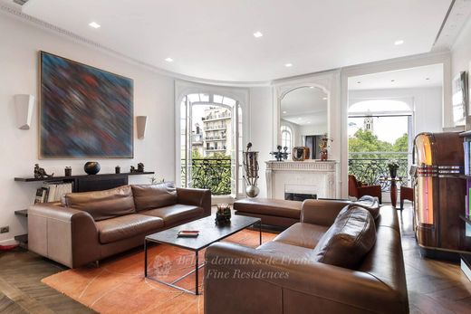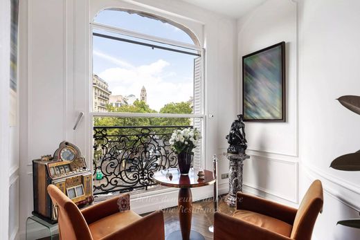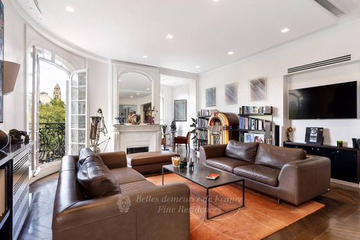 Triangle d'Or. A deux pas de la place de l'Alma, au quatrième étage d'un élégant immeuble d'angle, superbe appartement familial et de réception exposé ouest en parfait état. Il se compose d'une galerie d'entrée ouvrant sur une belle réception d'angle avec un bow window - jardin d'hiver offrant des jolies vues dégagées sur la place de l'Alma et les avenues Marceau et Président Wilson, d'une salle à manger, d'une suite de maître avec spacieuse salle de bains, de deux chambres avec leurs salles de bains, d'un bureau et d'une belle cuisine équipée. Très beaux volumes. Décoration raffinée. Climatisation.