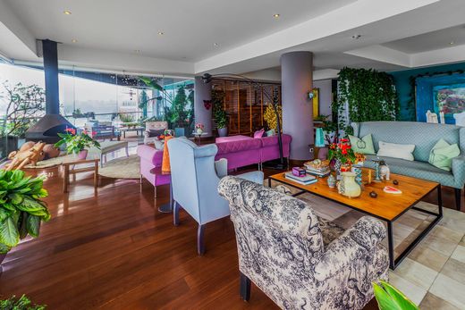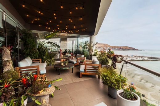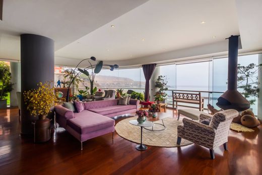 Imaginez-vous vous réveiller chaque matin face à l'immensité de l'océan, sur les falaises de Barranco. Cet appartement d'exception, situé dans un immeuble exclusif de seulement 8 appartements, offre 503 m² de raffinement et de confort absolus. Dès que vous franchissez le seuil de l'ascenseur privé et accédez à ses deux espaces de vie, vous savez que vous êtes arrivé dans un lieu unique, baigné de lumière naturelle. Vous profiterez d'un balcon panoramique offrant une vue imprenable sur l'océan Pacifique et d'une grande terrasse idéale pour admirer le magnifique coucher du soleil. Le spacieux séjour s'ouvre sur la terrasse et comprend un meuble TV. Trois chambres, chacune avec sa propre salle de bains et son dressing, vous garantissent le repos et l'intimité que vous méritez. La suite parentale est un véritable havre de paix, avec des finitions luxueuses, un coin salon cosy, un balcon donnant sur la terrasse, une superbe salle de bains et un grand dressing avec de nombreux rangements. La cuisine entièrement équipée, avec son bar, est conçue aussi bien pour le chef de famille que pour les moments conviviaux du quotidien. Une buanderie et un espace de service sont également à votre disposition. De plus, vous y trouverez un magnifique hall d'entrée, une sécurité 24h/24, deux ascenseurs directs et des espaces communs tels qu'une salle de sport et une vaste promenade privée. Quatre places de parking et un local de rangement sont inclus. L'atout majeur ? Un seul appartement par étage, pour une intimité absolue. Charges : 2 500 s/. Vivre au-delà de vos attentes.
