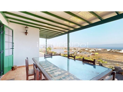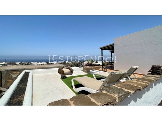 La propriete est situee sur un terrain en pente d'environ 2000m², offrant une vue panoramique degagee sur l'ocean Atlantique, les montagnes de Timanfaya, Montana Roja et Playa Blanca.