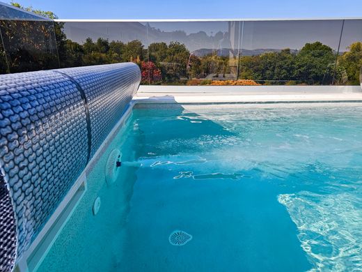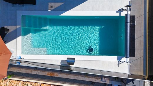 Depuis le salon et la cuisine, accédez à une grande terrasse et à l'attraction principale de la propriété : la piscine. Mais pas n'importe quelle piscine—il s'agit d'une piscine chauffée avec eau salée, jets de massage et système de nage à contre-courant. Une salle des machines enterrée avec une pompe à chaleur assure un fonctionnement fluide. La piscine est finie avec un revêtement kulir imperméable de couleur claire—pas en céramique ni en foil—lui donnant un ton unique et une durabilité exceptionnelle. Le jardin est paysagé avec des plantes méditerranéennes et comprend un espace de bronzage, une douche extérieure et un coin barbecue.
