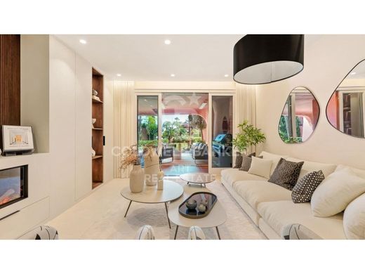 Cet appartement en rez-de-chaussee expose plein sud, avec trois chambres et trois salles de bains, a ete entierement renove selon les normes les plus elevees et offre une vue agreable sur les magnifiques jardins paysagers. Situe dans la prestigieuse residence fermee de Torre Bermeja sur la Nouvelle Mille d'Or, cette propriete haut de gamme est reputee pour ses jardins subtropicaux matures et ses installations cinq etoiles, comprenant deux piscines exterieures, deux salles de sport entierement equipees, une piscine interieure chauffee et deux saunas. La residence propose egalement une securite 24h/24, un acces direct a la plage et a la promenade maritime, ainsi qu'une proximite immediate avec plusieurs excellents restaurants.