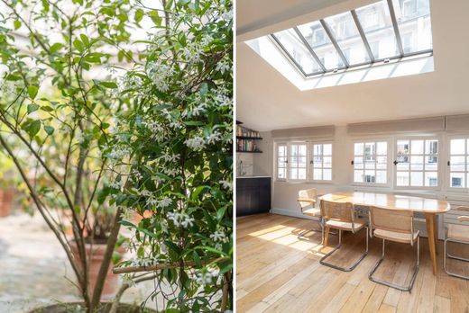 Au coeur du prisé Saint-Germain-des-Prés, entre la Seine et le boulevard Saint Germain et à l'abri des regards, rare maison au calme sur cour.