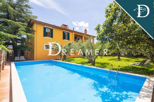 La propriété est entièrement clôturée et s'étend sur 66 hectares de terrain, comprenant des bois, des vignes et des oliveraies. 3 hectares sont consacrés à la production de vin Chianti, tandis que l'oliveraie compte environ 800 arbres. Les 56 hectares restants sont couverts de bois matures. La forêt dense qui entoure toute la propriété permet une agriculture biologique, non contaminée par des facteurs externes. La villa dispose également d'une grande piscine entourée d'un jardin surplombant la vallée verdoyante. Elle comprend une salle de sport et un sauna avec salle de bain et douche. La propriété est alimentée par une source artésienne qui garantit un approvisionnement constant en eau.
