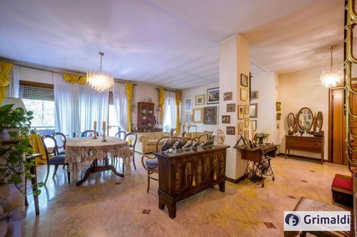 Réf. V33/25 - Dans le splendide cadre urbain du quartier exclusif de l'EUR, à deux pas du lac éponyme, véritable poumon vert du quartier, aux derniers étages d'un élégant immeuble des années 1960, conçu par l'architecte Nervi, avec conciergerie, ascenseur et vaste allée piétonne bordée d'espaces verts. Situé sur la Via delle Montagne Rocciose, en plein cœur de la ville, à l'angle de la Viale dell'Aeronautica, nous proposons à la vente un prestigieux appartement en duplex, lumineux et spacieux. L'appartement bénéficie d'un emplacement privilégié, offrant de nombreuses commodités, notamment de nombreuses banques, des administrations publiques, des écoles, un complexe muséal et à proximité d'axes routiers majeurs comme la Via Cristoforo Colombo.