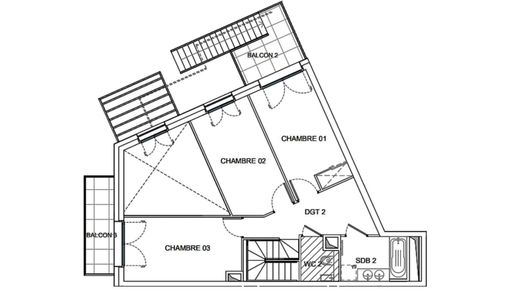 Au 4 ème étage, découvrez un duplex 4 pièces de 100 m² environ habitables, prolongé par un balcon de 20 m² environ.