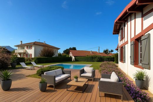 Quartier Moleressenia, maison d'habitation offrant 204m2 habitables sur un terrain plat de 1300m2 avec garage et parking. Cette maison se compose d'une belle entrée distribuant un vaste et lumineux séjour avec accès terrasse et piscine au sud, d'une cuisine séparée avec terrasse couverte vue Rhune, d'une buanderie, d'une cave à vins et de six chambres dont trois au rez-de-chaussée.