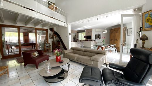 EN EXCLUSIVITE! On adore cette magnifique villa de type 5 de plain pied de 206m2 sur un terrain arboré de 1607m2 avec piscine chauffée sans vis à vis à Langlade. Parfaitement intégrée dans un environnement méditerranéen avec ses murs en pierre sèches et sa végétation luxuriante, cette belle villa inspire au calme et à la sérénité. Entièrement de plain pied elle nous ouvre ses portes sur de belles pièces de vie accédant toutes sur de belles terrasses à l'abri des regards.La cuisine entièrement équipée d'électroménager haut de gamme s'intègre totalement à la spacieuse pièce de vie chaleureuse agrémentée de sa cheminée à foyer fermé où la luminosité est omniprésente. Trois chambres dont une parentale avec sa salle de bain et sa douche à l'italienne et un bureau complètent le bien. Une chambre parentale supplémentaire avec douche et WC s'ajoute a cette belle villa. Un garage fermé et un carport terminent le bien. Une dépendance de 20m2 pouvant servir d'atelier ou de chambre d'amis est un plus! Un bien rare à la vente à ne pas manquer!